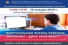 19 января 2018 г. в 12 часов состоится Республиканское родительское интернет-собрание "Виртуальная жизнь ребёнка: интернет - друг или враг?". Вопросы принимаются по адресу: roditelirt@mail.ru.