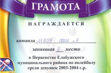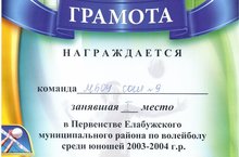 Безнең мәктәпнең 2003-2004нче елгы кызлар командасы Алабуга районында волейбол буенча үткәрелгән район беренчелегендә IIнче урын яуладылар.Афәрин!