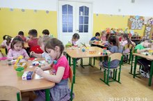 Нәфис-эстетик үсеш дәресләрендә 5-нче номерлы кече яшьтәге төркем педагоглары балаларны пластилинның кечкенә кисәкләрен кисәкләреннән йолкып, күрсәткеч бармак хәрәкәте белән картонда пластилинны җәяргә; бер-берсеннән тигез арада шарлар булдырырга; балаларда пластилин белән эшләргә кызыксыну тудырырга, вак моториканы үстерергә өйрәтәләр. Балаларда гүзәллек хисе тәрбияләү.
