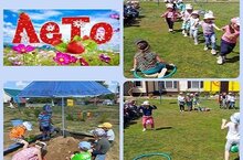Лучшее время летом в детском саду — это игры и прогулки на свежем воздухе. В любую погоду наши воспитанники готовы играть, бегать, соревноваться или просто лепить куличики в песочнице вместе с друзьями. А сколько много нового и интересного они узнают из наблюдений: «Почему плывут облака», «Почему идет дождь», «Много ли унесет один муравей?», «Как распускается цветок». И каждый день обсуждая и беседуя открывают для себя все новые и новые знания. / Балалар бакчасында җәйнең иң яхшы вакыты — уеннар һәм ачык һавада йөрү. Һәркайсы һава торышында безнең тәрбияләнүчеләр уйнарга, йөгерергә, ярышырга яки дуслары белән бергә комлыкта култыклар ясарга әзер. Ә күпме яңа һәм кызыклы нәрсәләрне алар күзәтүләрдән беләләр:» ни өчен болытлар йөзә, ни өчен яңгыр ява, бер кырмыска күпме алып китәр?, Чәчәк ничек чәчәк ата .Һәм һәр көн фикер алышып һәм сөйләшеп, үзләре өчен яңа һәм яңа белемнәр ачалар.Лето в детском саду./