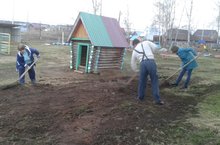 Выравнивание игровой площадки в детском саду 10.05.2016