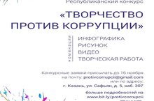 Министерство по делам молодежи Республики Татарстан объявил Республиканский конкурс «Творчество против коррупции». Номинации: видео, инфографика, рисунок, творческая работа.