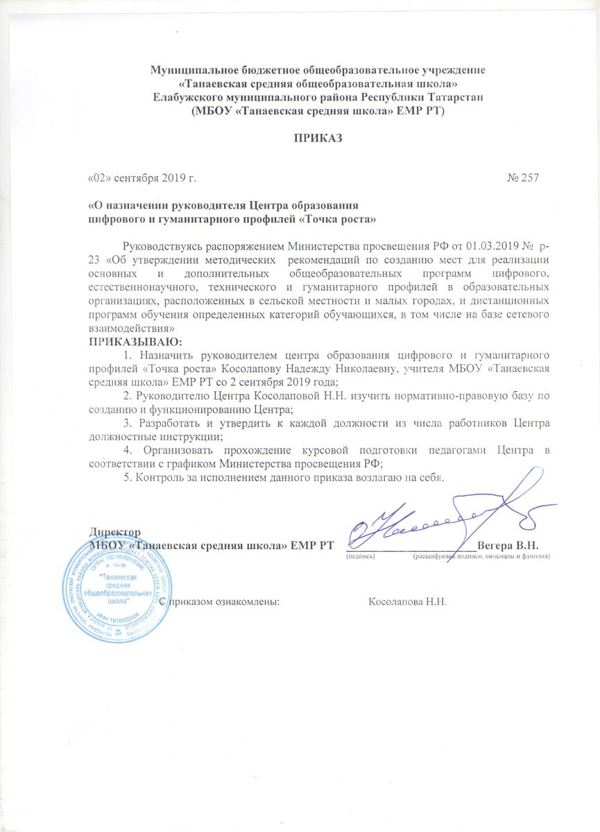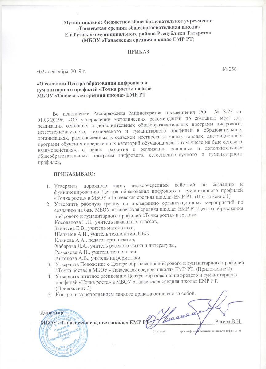 Положение о Центре образования цифрового и гуманиторного профилей "Точка роста"