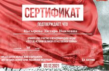 Пришел Сертификат участника Международной акции "Тест по истории Великой Отечественной войны" для нашего скаут-кадета Насыровой Диляры (Норка). Поздравляем: она набрала максимальное число баллов!