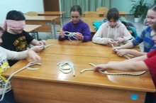 "Спорт ориентлашуы" берләшмәсе укучылары педагог Горшунова Е.В. җитәкчелегендә туристлык төеннәрен үзләштерә башладылар. Балалар ике төрле диаметрлы бау бәйләү өчен узеллар үзләштерделәр. "Турыдан-туры" һәм "ябык күзле" төеннәрне бәйләргә тырыштылар.