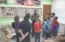 Ребята из объединения «Юные туристы» 5а класса «Университетской» школы (рук. Альфия Хамидуллина) посетили Зоологический музей ЕИ КФУ на базе факультета биологии и химии. В музеи представлены экспонаты птиц, зверей, членистоногих, иглокожих, раковины моллюсков, палеонтологические находки беспозвоночных и позвоночных животных. В центре зала зоологической экспозиции внимание детей привлекло два внушительных размеров экспоната - бурый медведь и кабан. Оказалось, что это всего лишь молодые особи.