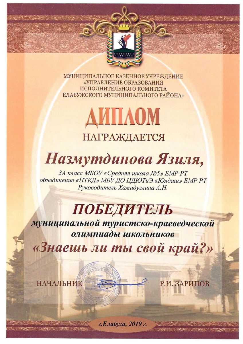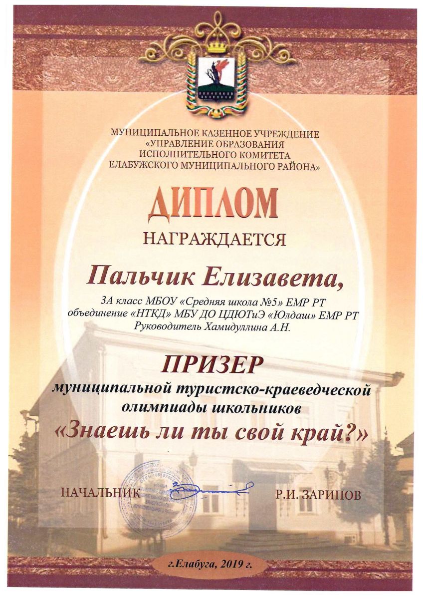 Грамота призера конкурса " Лучший турист 2019 года" Гайнуллин Богдан.jpg