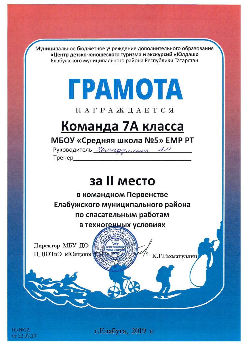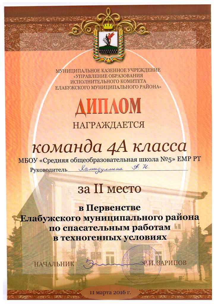 Диплом II место по спасательным работам в техногенных условиях. 4а кл, СОШ 5.jpg