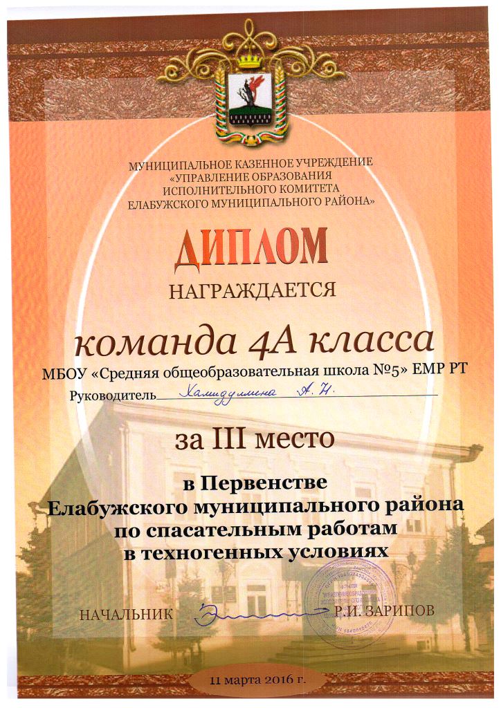 Диплом за III место по спасательным работам в техногенных условиях. 4а кл., СОШ 5..jpg