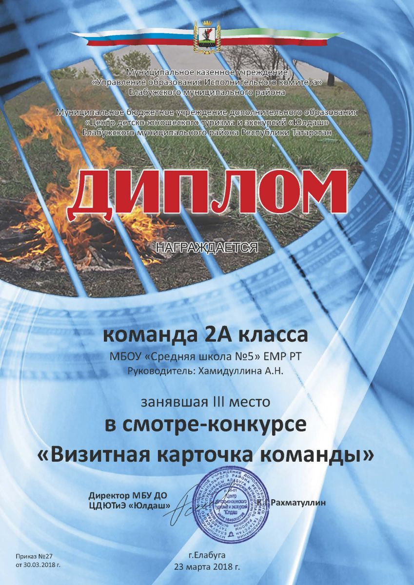 Диплом за 3 место в смотре-конкурсе "Визитная карточка команды" команда СОШ №5 2А класс.jpg