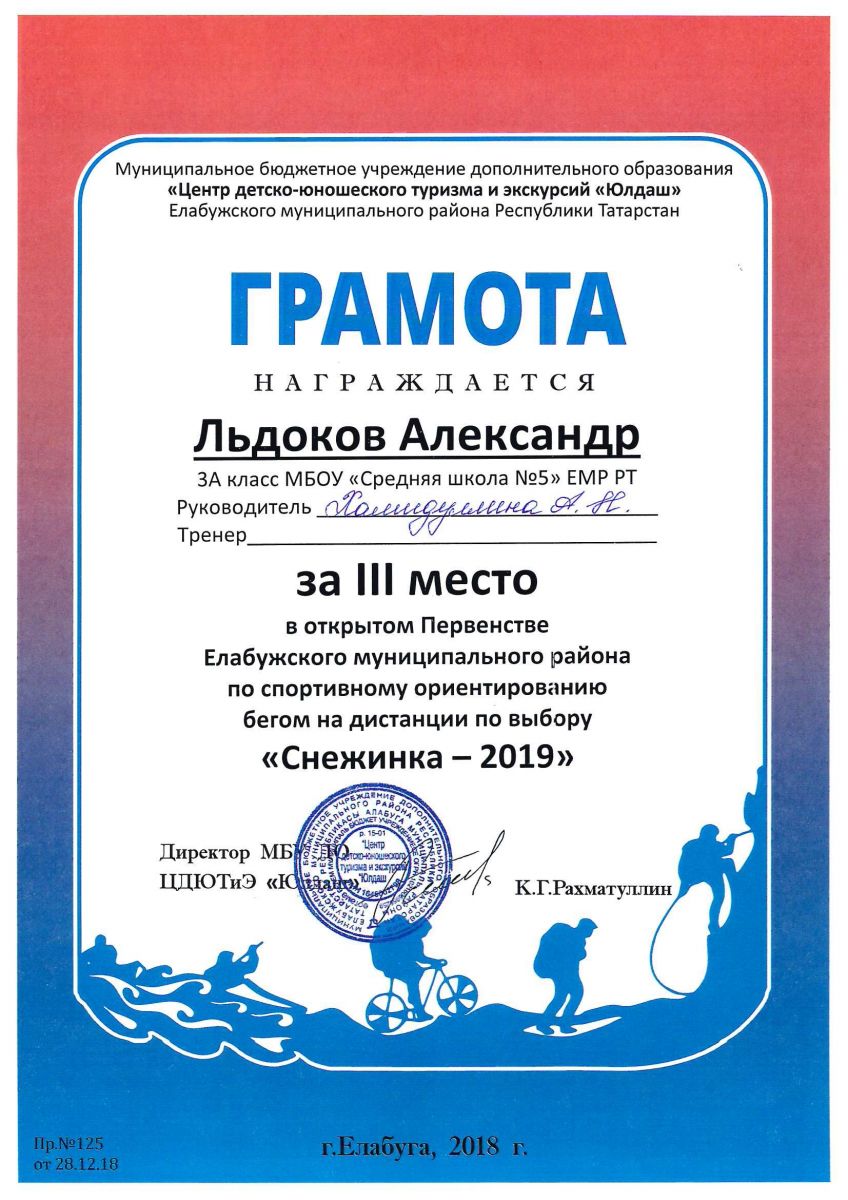 Грамота за 2 место Льдоков Александр "Снежинка-2018".jpg
