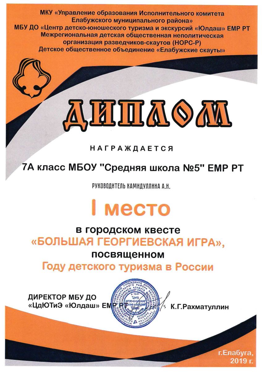 Грамота за 1 место в командном зачете "Большая Георгиевская игра", 2019.jpg