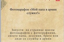 В рамках проекта "80 шагов к Победе", учащиеся нашей школы запустили фотомарафон "Мой папа в армии служил" с фотографиями своего папы, дедушки, брата, дяди со службы в армии. https://vk.com/club211802343