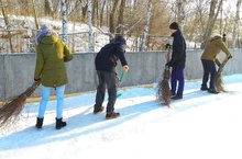 Вот и залили каток, там довольно хороший лёд. Учащиеся активно занимаются спортом.