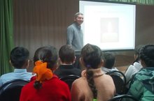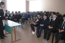 Учитель истории и обществознания Гильмутдинов Р.Х. провел классный час в актовом зале школы.