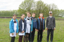 Учащиеся старших классов и члены ШУС "Яшьлек" ведут акцию. С педагогом организатором Нутфуллиной Р.Х. учащиеся собирали материал о тыловиках, о детях военных лет.