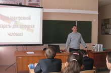 Учитель биологии Гайнуллин З.А. провел беседу на тему: "Сигареты-это опасно". Он рассказал о вреде элетронных сигарет.