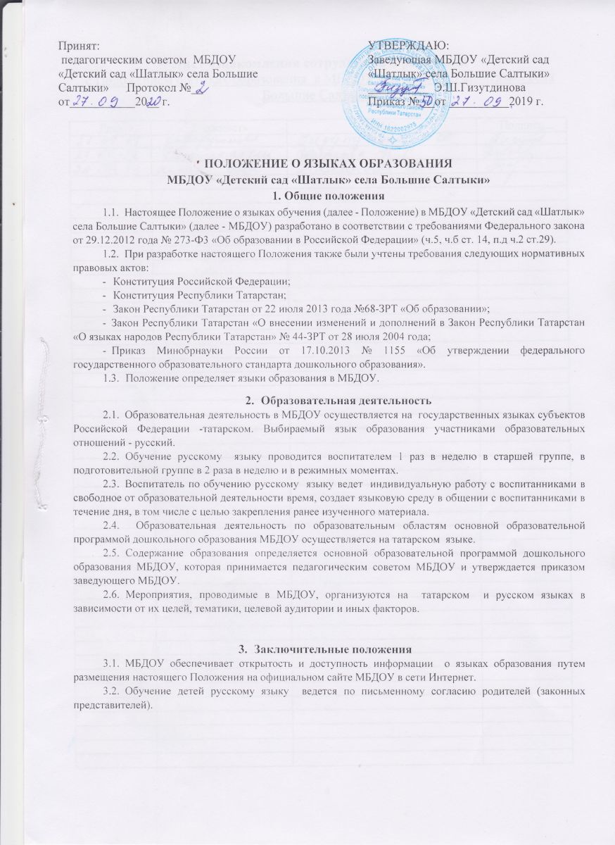 Муниципальное бюджетное дошкольное образовательное учреждение "Детский сад "Шатлык" села Большие Салтыки" Большесалтыковского сельского поселения Камско-Устьинского муниципального района Республики Татарстан/ Татарстан Республикасы Кама Тамагы муниципаль районы Олы Салтык авыл җирлеге "Олы Салтык авылының "Шатлык" балалар бакчасы" муниципаль бюджет мәктәпкәчә белем бирү учреждениесе