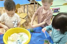 В средней группе "Звёздочки" прошла неделя экспериментов и исследовательской деятельности, ко дню Российской науки 8 февраля. Дети применяя полученные знания, провели эксперимент: сделали цветную воду, а потом этой водой рисовали на белом снегу при помощи пипеток. Проводя этот эксперимент ребята закрепили представления о свойствах снега, убедились в том, что рисовать можно разными способами, что и снег можно красить , что снег впитывает воду, как губка (воспитатель Мубариева Ю.Р.)