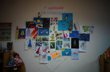 Детишки подготовительных групп вместе со своими родителями сделали поделки ко дню космонавтики. Воспитатели провели беседу с детьми.