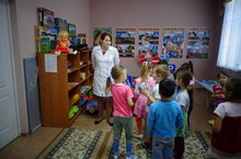 Каждый русскоязычный воспитатель проводит с детьми своей группы занятия на татарском языке. Воспитатель 2 младшей "Б" группы Ольга Евгеньевна Будилова показала открытое занятие молодым воспитателям на татарском языке. Ольга Евгеньевна чётко объясняет задания, умело обращается с материалами, тщательно закрепляет изученный материал.