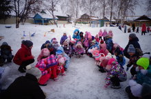Сегодня дети старших групп под руководитством воспитателя по обучению второму (татарскому) языку показали детям младших и средних групп сказку "Теремок" на татарском языке. Представление было веселым, интересным, и зрители и выступающие остались очень довольны.