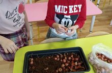Мы решили, что это будет Лук! Ребята с удовольствием помогали в организации зелёной, витаминный грядки.