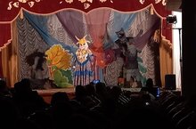 Сегодня воспитанники средних, старших и подготовительных групп посетили РДК, где посмотрели спектакль "Кэжэ белэн Сарык" (Коза и Овца), представленный артистами театра кукол "Экият", в рамках гастролей в Камском Устье. Инсценировка написана Г.Рахимом по одноимённой сказке великого татарского поэта Г. Тукая.