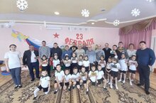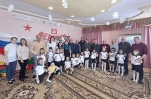 Пап, дедушек подготовительной к школе А группы с праздником 23 февраля поздравляют их детишки.