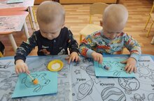Первая младшая группа. Рисование " Зайка беленький сидит..." Наши самые маленькие продолжают знакомится с необычными способами рисования. Малыши повторили игру "Зайка серенький сидит..." Закрепили свои знания, что зайчик зимой белый.