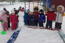 Дети из второй младшей Б группы слепили снеговика. Здорово получилось, молодцы!