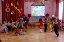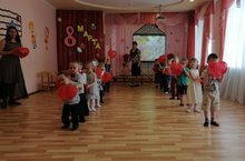 Прошел утренник в средней группе Б - дети поздравили мам красивыми стихами, песнями, вместе с ними играли и веселились.