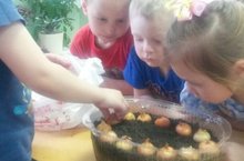 Мы сами растим витаминчики! Каждый год ближе к весне детишки каждой группы сами сажают лук, сами ухаживают за ним, после сами же кушают. Они наблюдают за росточками, учатся бережно относится к растениям. И знают о полезных свойствах лука.