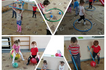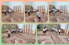 В старшей группе веселые старты! Все задания с мячом! Над головой, между ног, пробеги, догони... но не упусти!