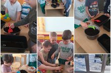 Средняя группас воспитателем Загидуллиной Р.Т. посадили огород. Цветы, лук, укроп будут расти на подоконнике.Уртанчылар төркеме балалары тәрбиячеләре Загидуллина Р.Т. белән берлектә тәрәзә төпләренә чәчәкләр, суган утырттылар. Үсентеләрнең үсешен алар даими карап торачаклар.