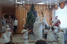 Вогспитанники средней шруппы отправились в гости к Деду Морозу. Веселили Петрушки, обдували Снежинки, дорогу показывали Заичишки и Лиса! Поездка на новогоднем паровозике была увлекательной для всех.