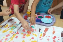 А чтобы он был осенний раскрасили его красками, но не кистью, а .......капельками из пипетки!
