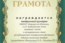 Наших воспитанников подготовительных групп, воспитателя Курбанову И.Ю., музыкального руководителя Демидову Т.Л., воспитателя татарского языка Миннуллину Д.А. с победой в муниципальном этапе республиканского театрального фестиваля детских юношеских театров! Молодцы!
