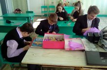 Учащиеся 7 класса испытывают слип-карты, которые пришли в Кирельскую школьную библиотеку.