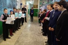 Сегодня на линейке состоялось вручение Грамотами самых активных участников и победителей Всероссийской олимпиады по математике "Дино".