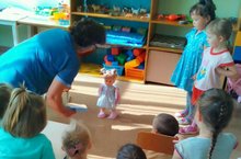Сегодня у нас в гостях была Оленина О.В. она провела с детьми увлекательное и познавательное занятие "Говорящая кукла Настенька"
