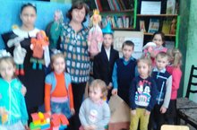Дети посмотрели кукольный спектакль Ш.Перро. "Кот в сапогах" поставленый совместо сотрудниками библиотеки, детского сада и школы.