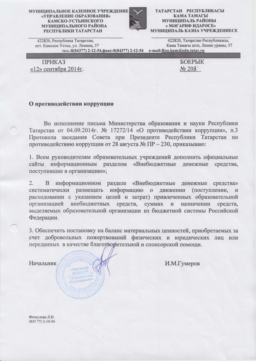 Приказ о противодействии коррупции