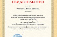 29 марта 2022 года методист Центра внешкольной работы Феткулова Лейсан Ирековна приняла участие в работе республиканского семинара "Совершенствование профессиональных компетенций в области музейно-педагогической деятельности.