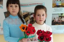 Обучающиеся объединения дополнительного образования "Прикладное творчество" изготовили букет композицию из тюльпанов для мам "С днем 8 Марта".