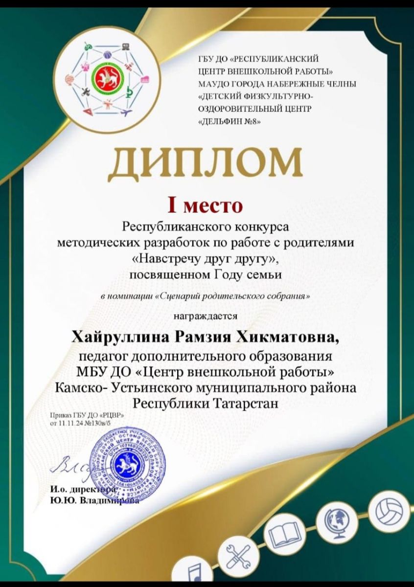 Муниципальное бюджетное учреждение дополнительного образования "Центр внешкольной работы" Камско-Устьинского муниципального района Республики Татарстан/ Татарстан Республикасы Кама Тамагы муниципаль районы өстәмә белем бирү муниципаль бюджет учреждениесе "Мәктәптән тыш эшләр үзәге"