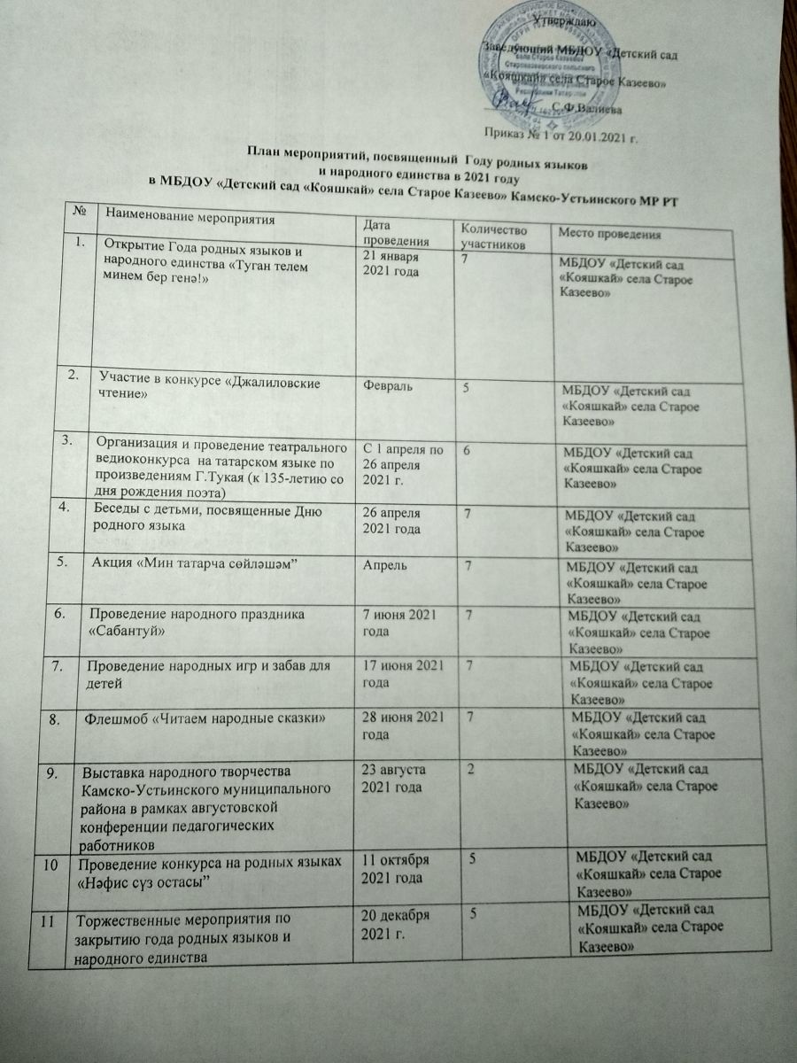 План мероприятий, посвященный Году родных языков и народного единства в 2021 году