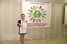 Состоялась Межрегиональная научно-практическая конференция "Иностранный язык-диалог культур". Ученица 6 класса Садреева К. заняла 3 место. Молодцы! Желаем дальнейших успехов!