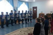 Отряд ЮИД выступил перед воспитанниками детского сада. Члены отряда напомнили малышам о правилах дорожного движения, правилах пассажиров и пешеходов.