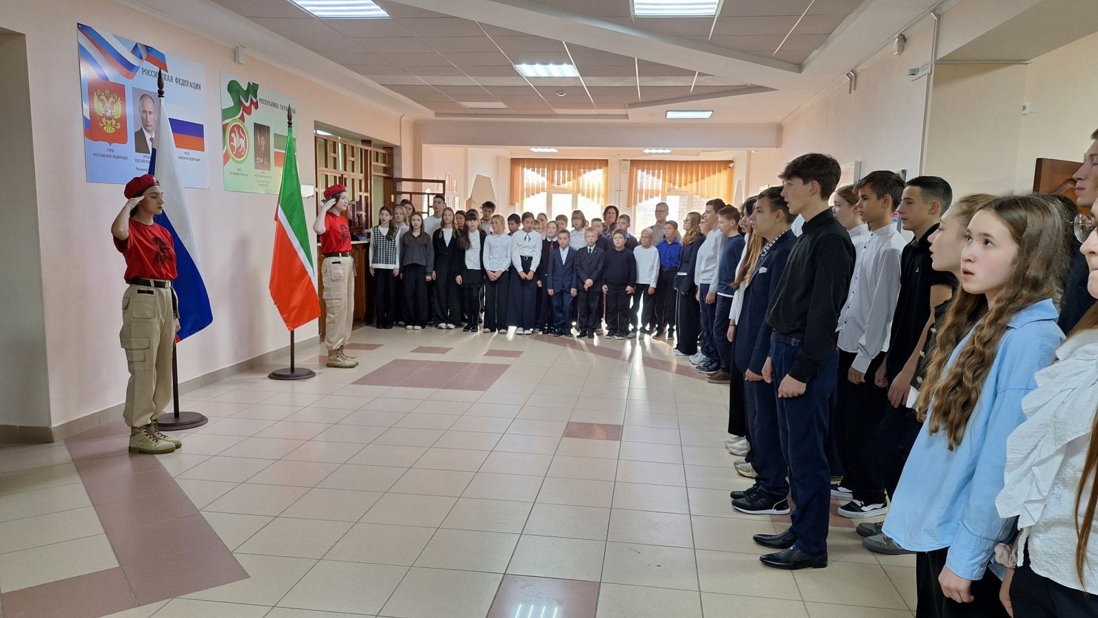 8 сентябрь көнне 5-8 сыйныф укучылары РФ һәм ТР гимннарын башкару линейкасында катнаштылар. Яшь армиячеләр Исмәгыйлова Рузана һәм Кетцян Аннага Россия Федерациясе һәм Татарстан Республикасы дәүләт флагларын күтәрү хокукы бирелде. Киләчәк уку атнасында илебез билгеләп үтәчәк дәүләт әһәмиятле даталары һәм вакыйгалары белән танышу булды.